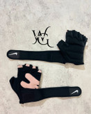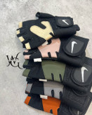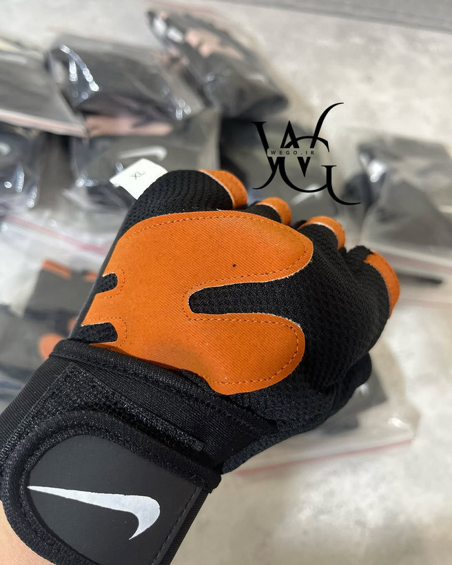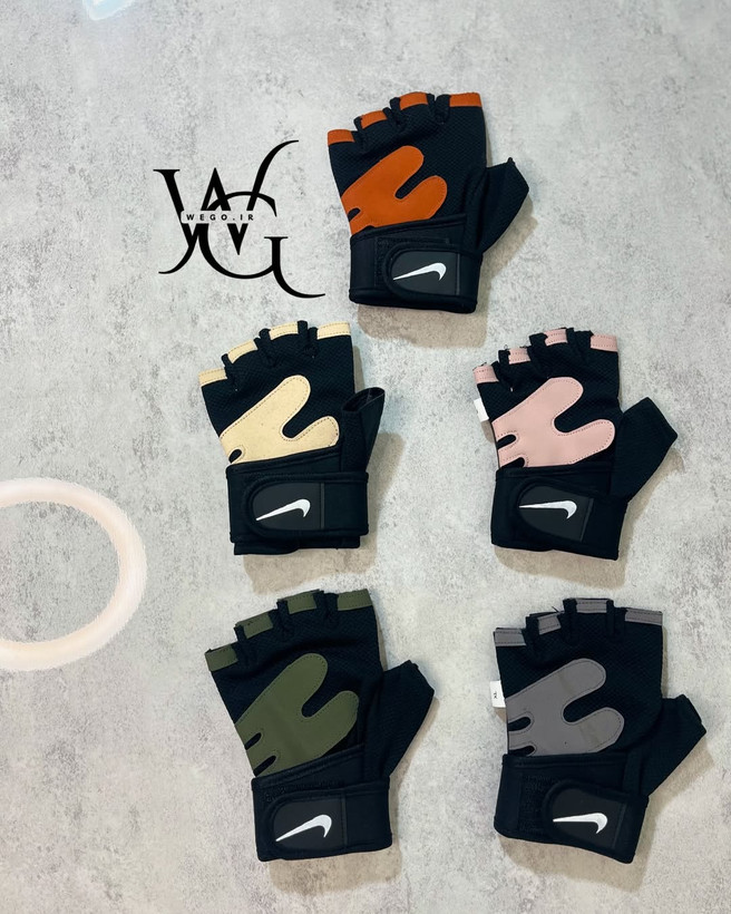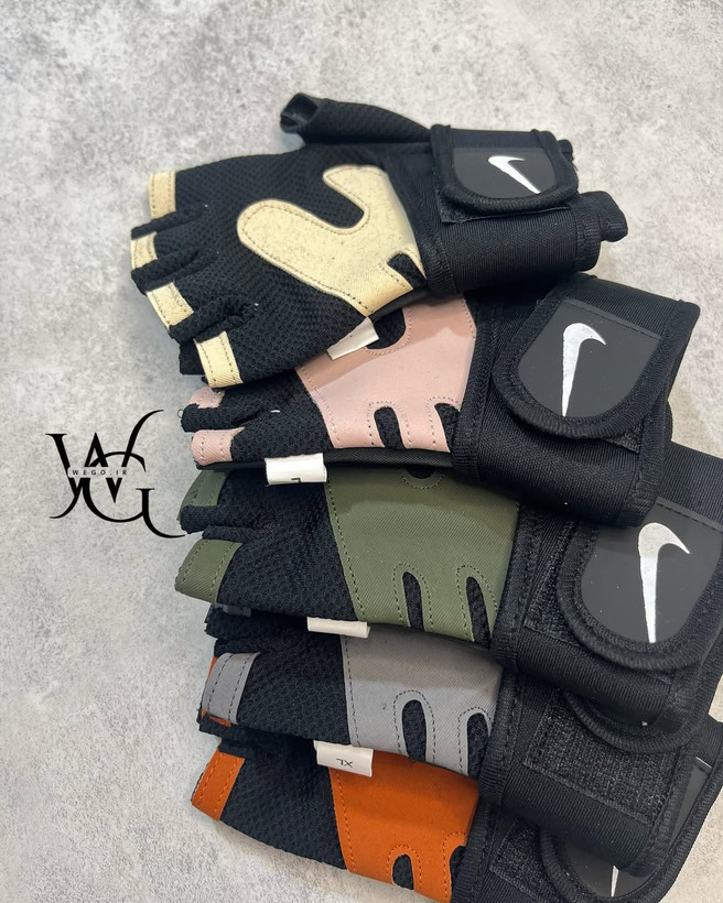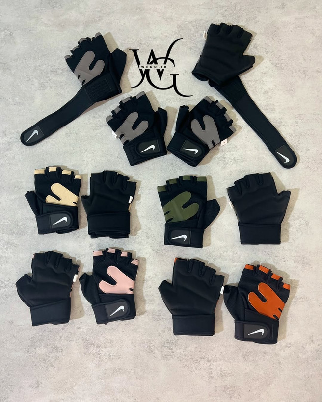 دستکش نایکی کیفیت عاااالی رنگ بندی مطابق عکس مشکی/طوسی مشکی/سبز مشکی/اجری مشکی/صورتی ملیح مشکی/کرم سایزبندی لارج و ایکس لارج مچ بند داره پس نگران مچ دستتم نباش چسبش عالیه کف ضربه گیر