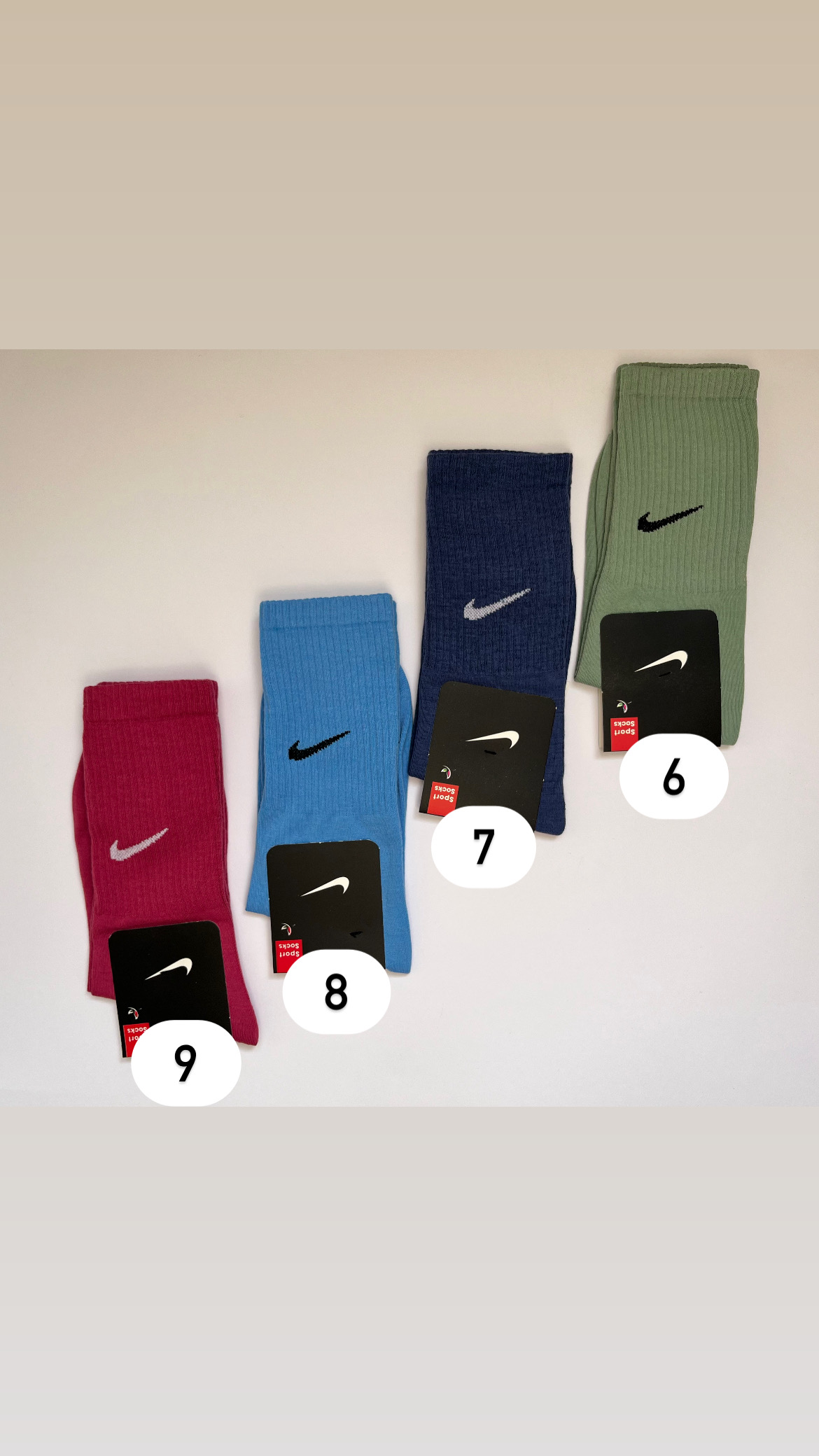 جوراب نخی و باکیفیت و محکم ساقدار نایکی رنگبندی جذاب مناسب بزرگسال نکته۱؛ جهت ثبت سفارش به کدهای داخل تصویر دقت کنید نکته۲؛ امکان مغایرت یک تادو درجه رنگ باتوجه به نور و زوایای عکاسی